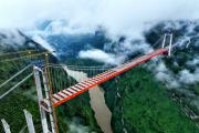 到:  这是9月23日拍摄的天门特大桥(无人机照片)。  9月23日,由中铁广州局等单位承建的贵州安(安顺)盘(盘州)高速天门特大桥成功合龙。  天门特大桥...