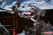 这是12月9日在北京航天飞行控制中心屏幕上拍摄的神舟二十一号乘组航天员武飞在舱外工作的画面。  据中国载人航天工程办公室介绍,12月9日18时45分,经过约8小时的出...