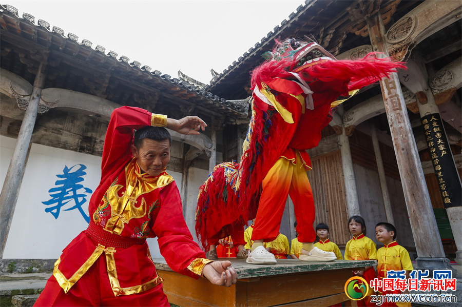 近日,在安徽省黄山市歙县杞梓里镇英坑村一座明代祠堂内,鼓声阵阵,狮舞灵动。当地非遗“英坑舞狮”代表性传承人黄良立正为村中的孩子们进行公益教学,传授这项拥有六百余年历史的传统技艺。
