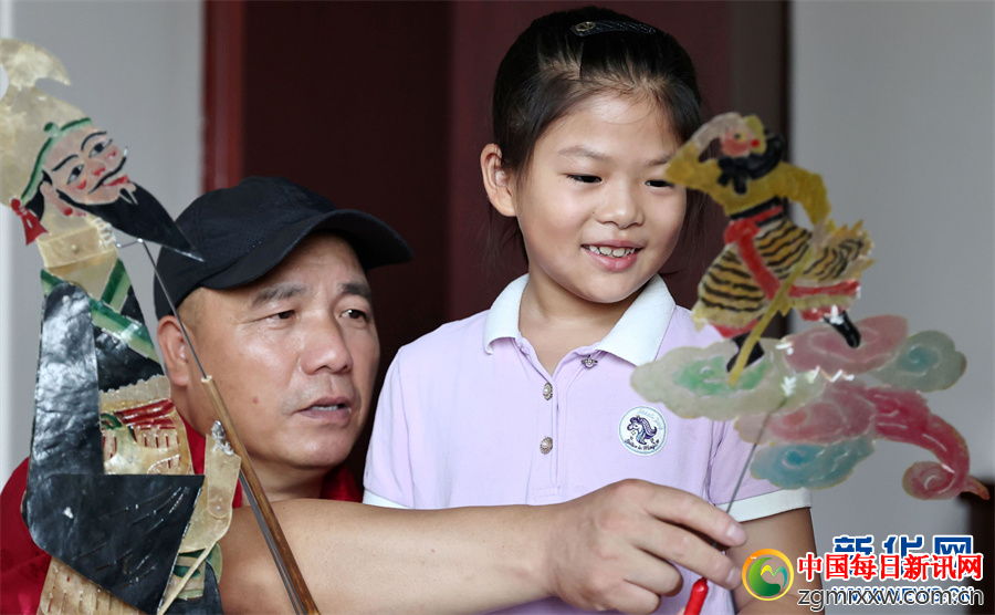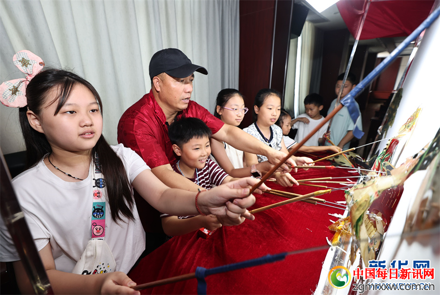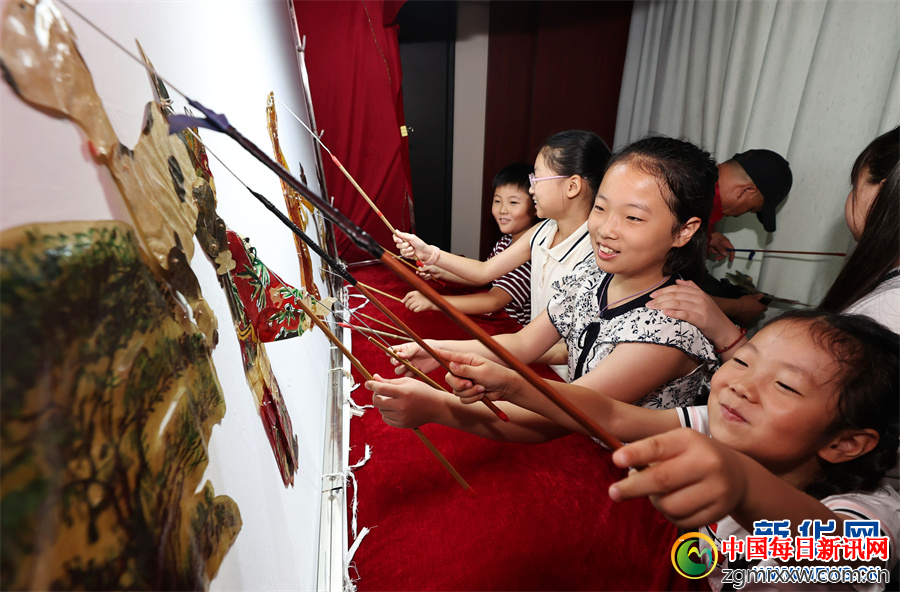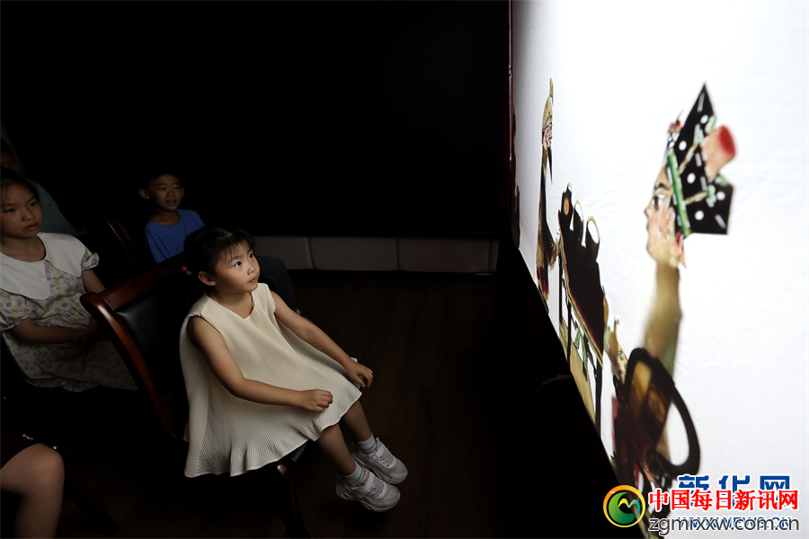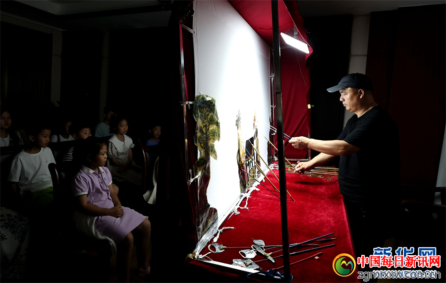当日,安徽省淮北市总工会邀请非遗皮影戏传承人走进暑期儿童托管班,讲解皮影戏知识,表演皮影戏,让孩子们近距离接触皮影戏艺术,感受非遗文化的魅力。新华网发(张锋 摄)