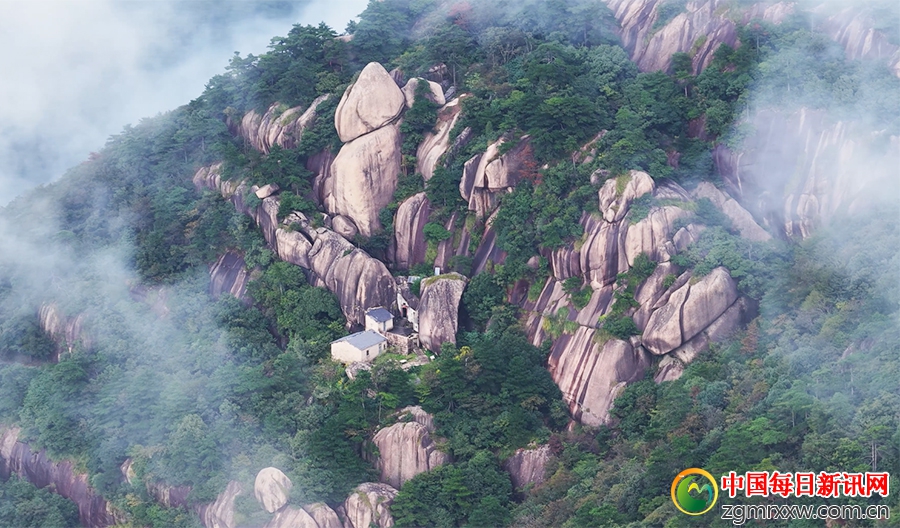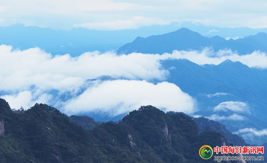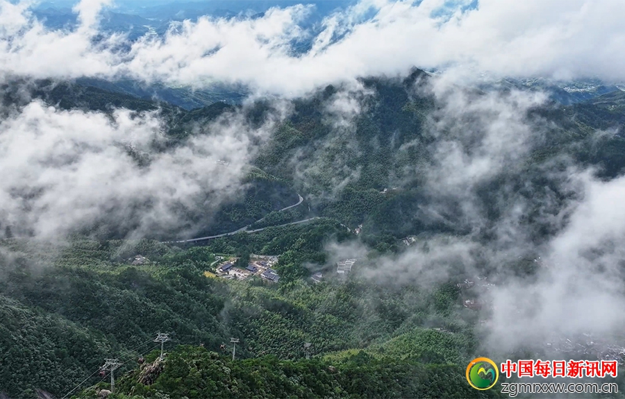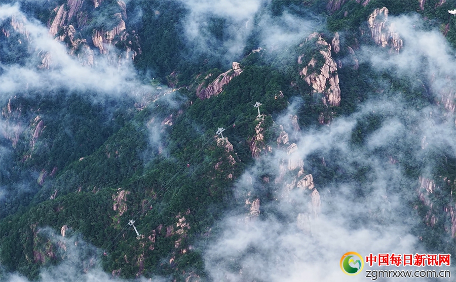 近日,雨后的安徽九华山风景区被云海环绕,若隐若现,美不胜收。(杨银龙 王帆 摄)