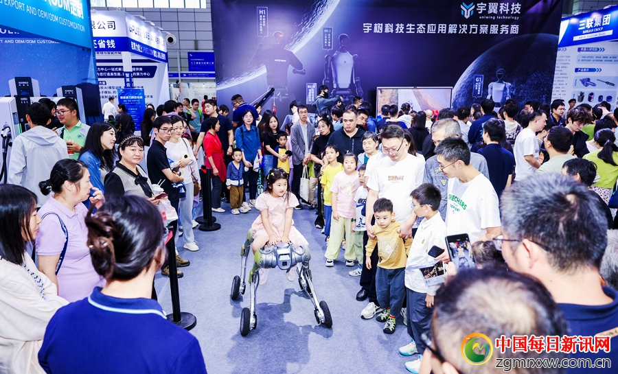 2025年9月20日,在2025世界制造业大会展馆内,人形机器人受到参观者的关注。新华网发(廖宇翔 摄)