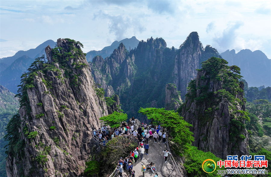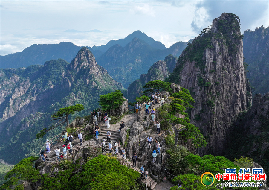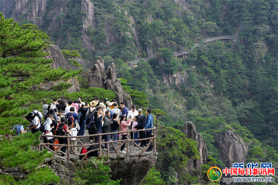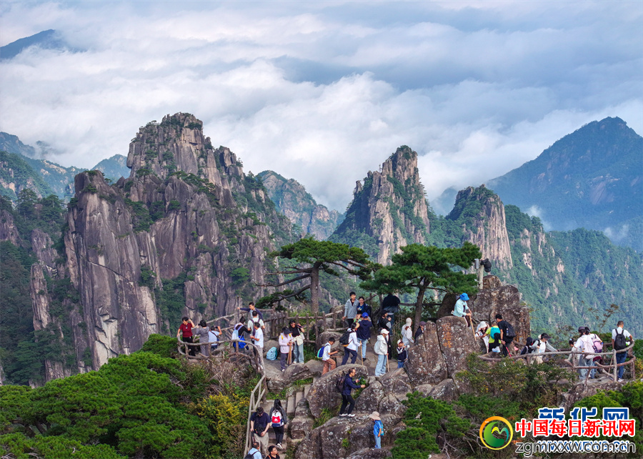 当日,黄山风景区风光旖旎,众多游客前来休闲度假,感受大自然的鬼斧神工,畅享快乐假期,旅游秩序井然。新华网发(施亚磊 摄)