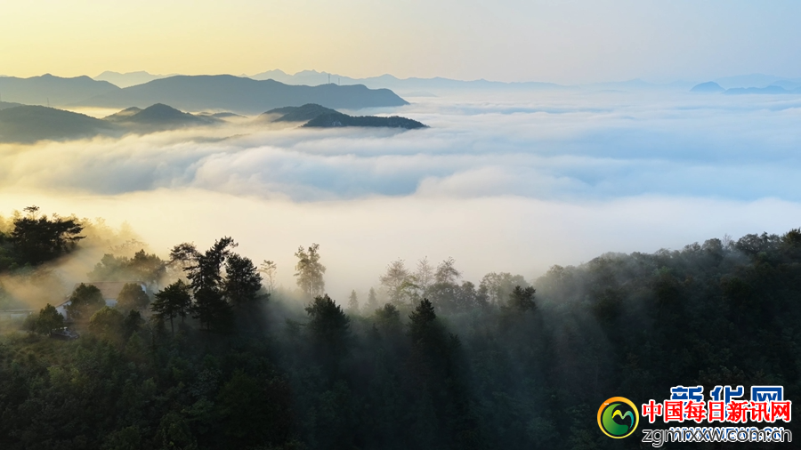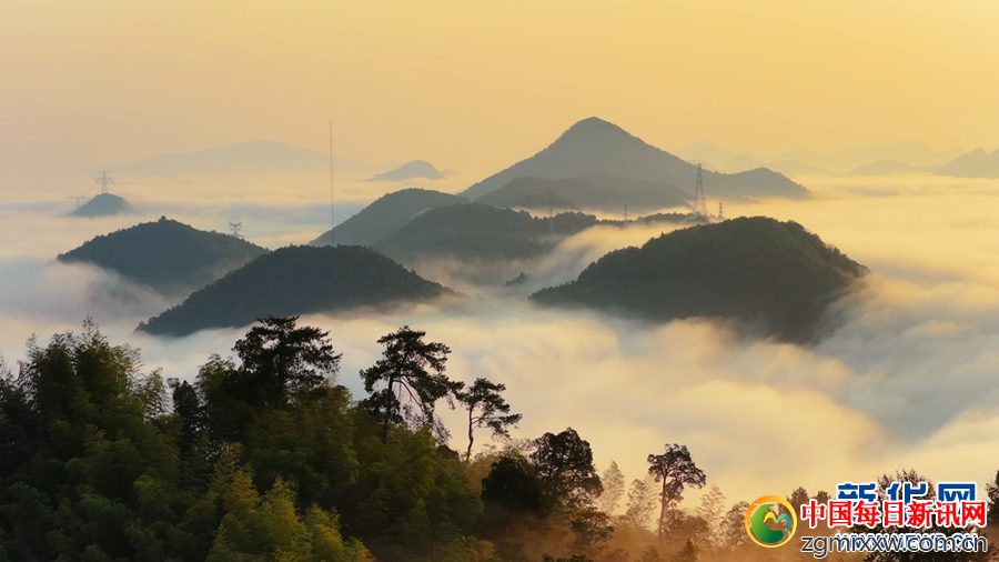 国庆假期,安徽省池州市玉屏山出现云海景观。云海翻涌如涛,山峦在云雾中若隐若现,朝霞为山川勾勒出金色的轮廓,描绘出大自然的壮美意境。