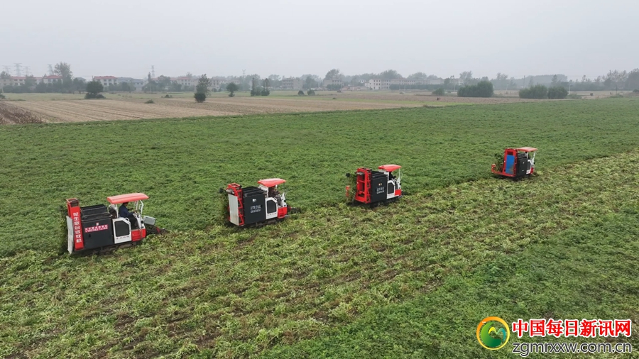 日前,安徽省阜南县抓住降雨间隙,以全程机械化推进5万余亩花生采收,确保丰收成果颗粒归仓。