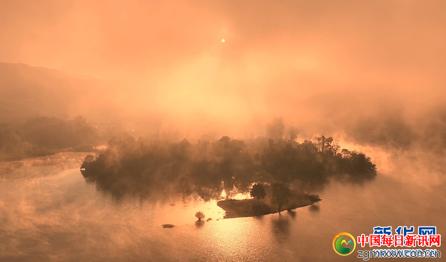 深秋时节,安徽省池州市石台县秋浦河晨雾氤氲,如轻纱缭绕。天边霞光渐染云层,与朦胧晨雾交融辉映,宛若一幅天然绘就的水墨长卷。(王帆 徐丽红)