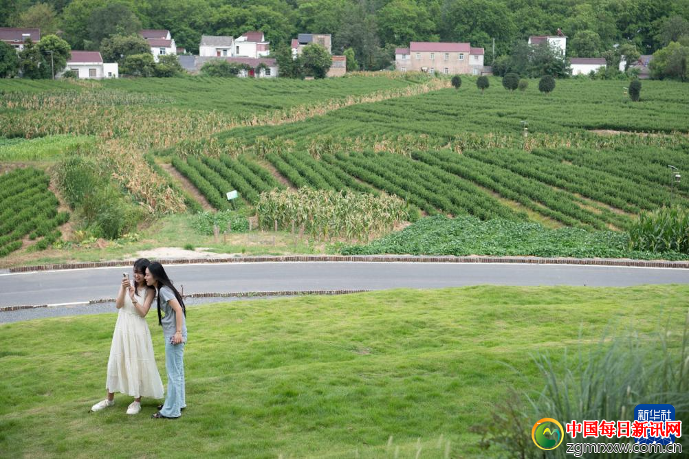 2025年7月26日,游客在安徽省合肥市庐江县长冲村拍照游玩。新华社记者 张端 摄