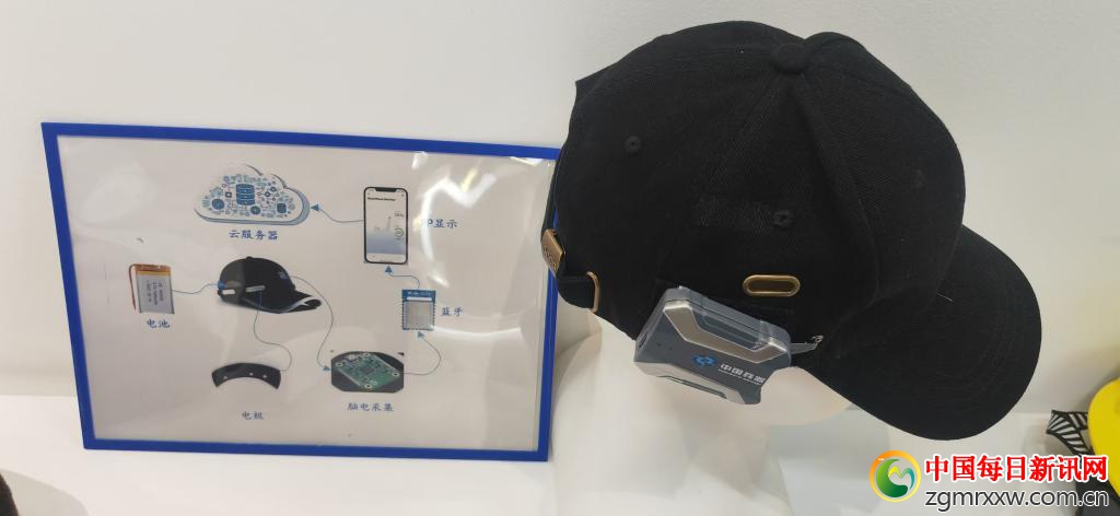 安徽北方微电子研究院研制的脑机接口健康帽。新华社记者 王菲 摄