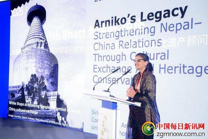 2025白塔夜话现场,加德满都阔帕工程学院访问教授、中国文物保护基金会文化遗产顾问希丽斯·帕塔分享尼泊尔与白塔寺的历史渊源。西城区文化与旅游局供图(2025年9月26日摄)