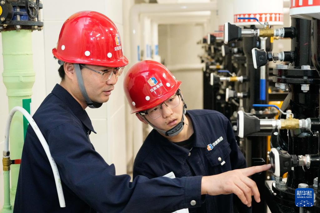 11月7日,在北京热力海淀分公司上河村C区锅炉房,工作人员在查看设备运行情况。