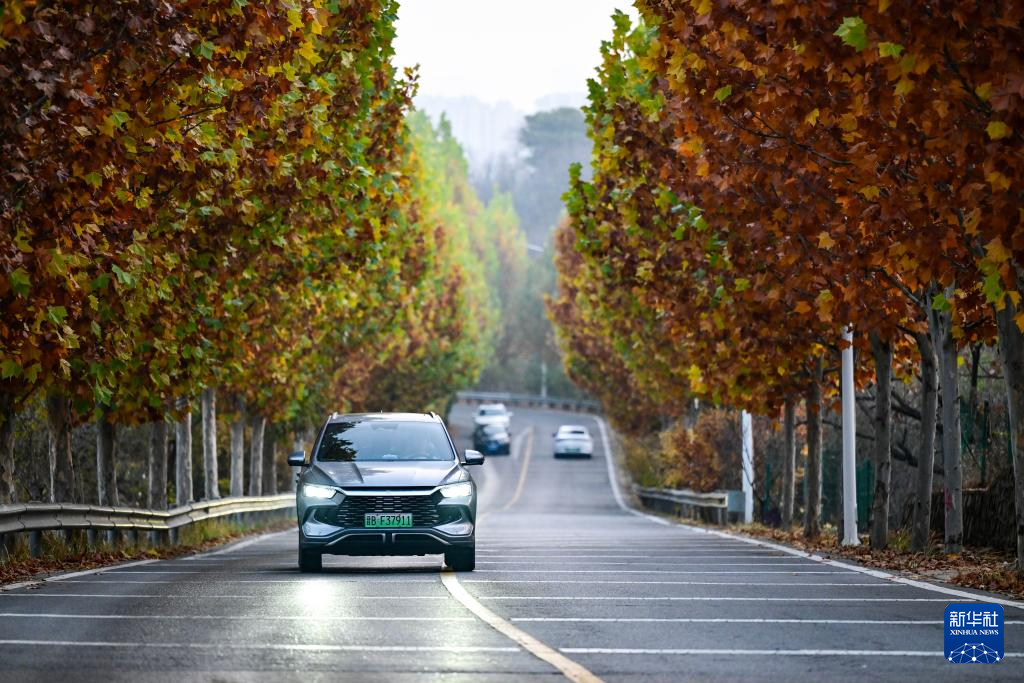 11月8日,车辆行驶在北京红螺寺附近的一条公路上。