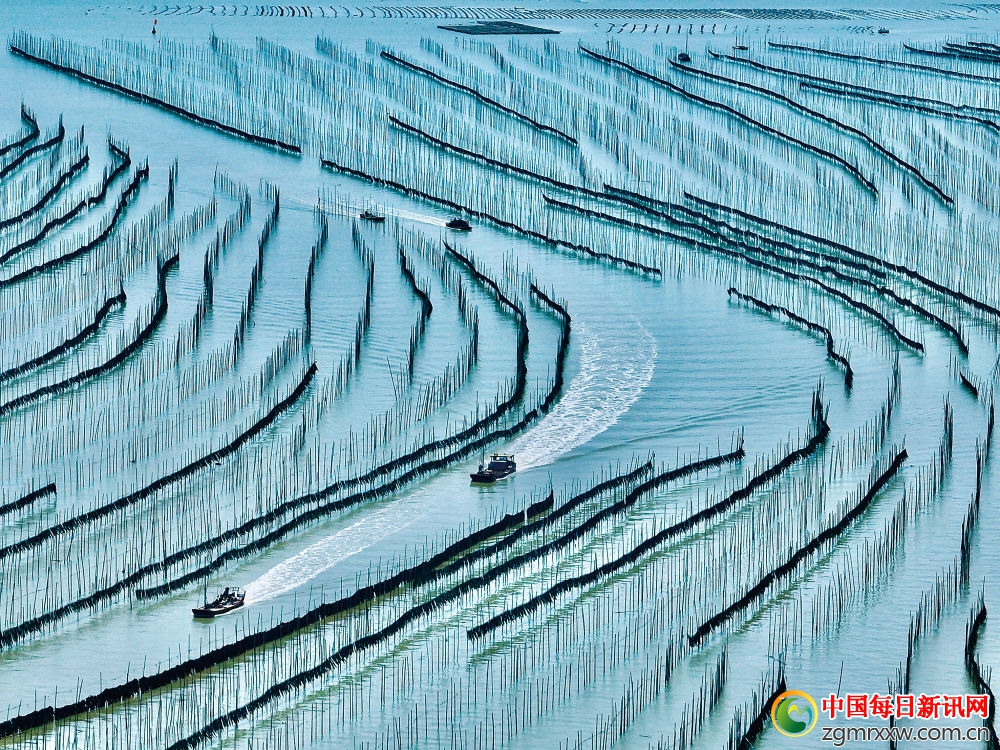 2025年4月15日,渔船行驶在霞浦县沙江镇S湾内。均为新华每日电讯记者姜克红摄