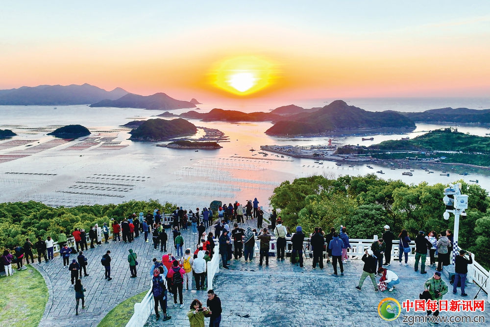 2024年11月29日,游客在霞浦县三沙镇花竹村观赏日出。