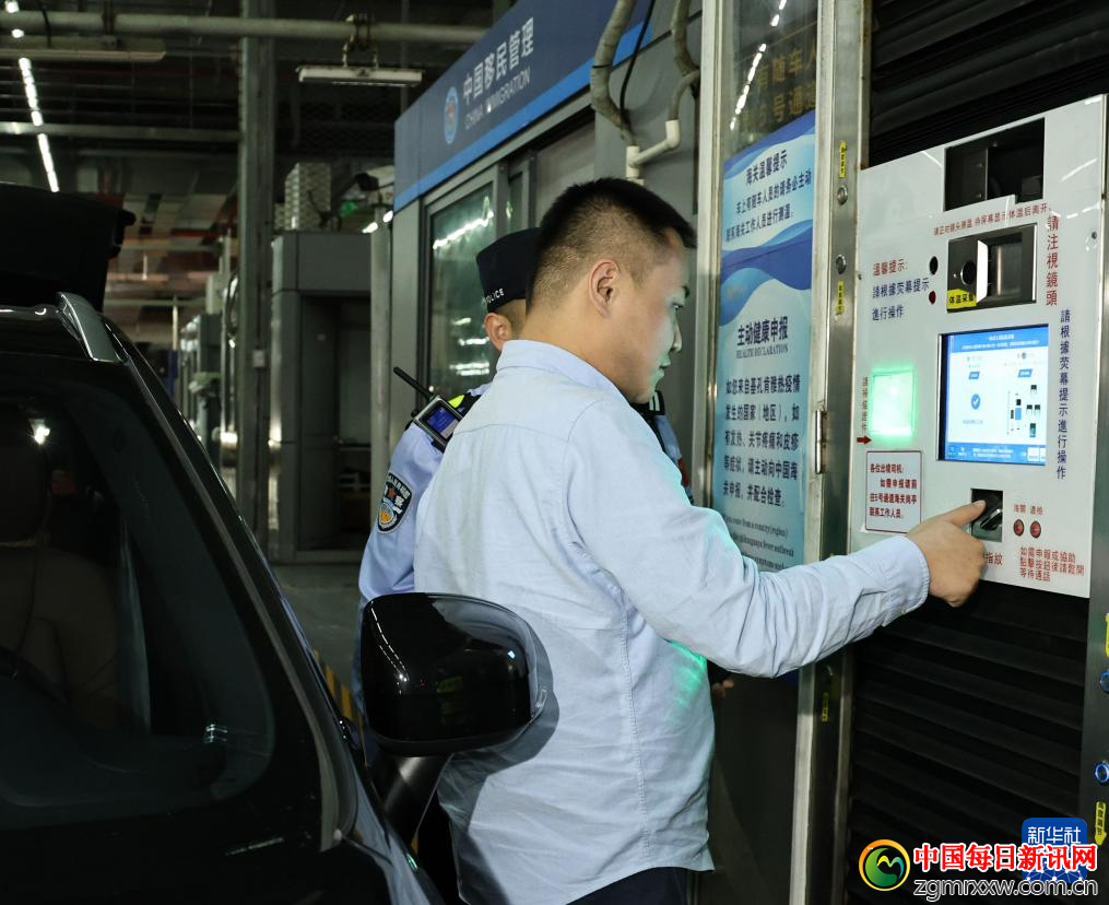 11月15日零时,“粤车南下”首位通关车主周先生在“一站式”通道办理通关手续。新华社记者 黄国保 摄