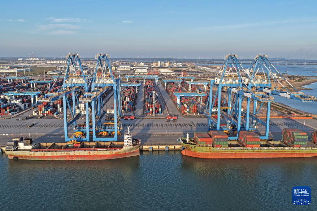 这是繁忙的广西北部湾港钦州港区(11月12日摄,无人机照片)。