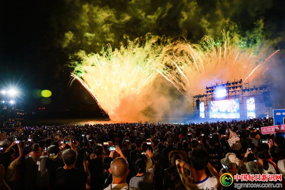 暑期,游客在儋州市海花岛旅游度假区观看烟花秀。新华社发