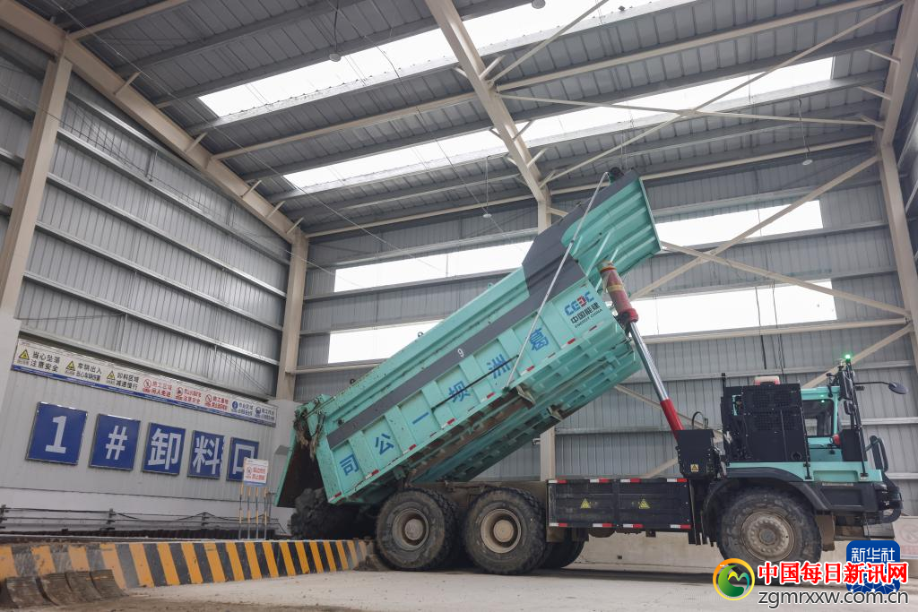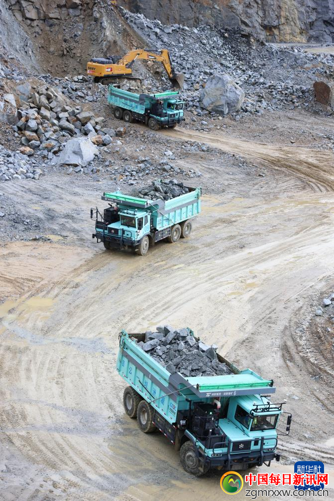 9月17日,在海南定安县大岭花岗岩矿项目现场,无人驾驶矿卡在卸料。新华社记者 张丽芸 摄