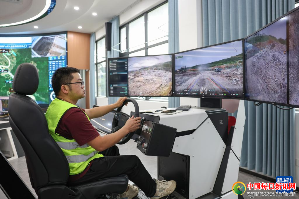 9月17日,在海南定安县大岭花岗岩矿项目现场,工作人员监测无人驾驶矿卡的运行情况。新华社记者 张丽芸 摄