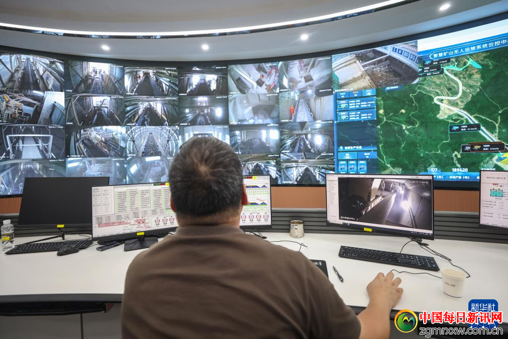 9月17日,工作人员在海南定安县大岭花岗岩矿项目的中控室监测现场运行情况。新华社记者 张丽芸 摄