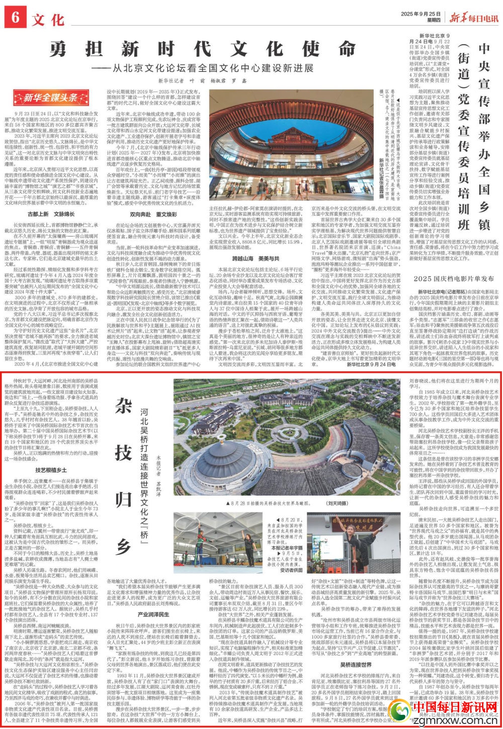 近年来,吴桥县深入实施“杂技兴县”战略,打好“杂技+文旅”“杂技+制造”等特色牌,让这一传统艺术以创新姿态融入现代产业链,成为推动县域经济高质量发展的新引擎。2025年,吴桥县入选全国第二批文化产业赋能乡村振兴试点名单。