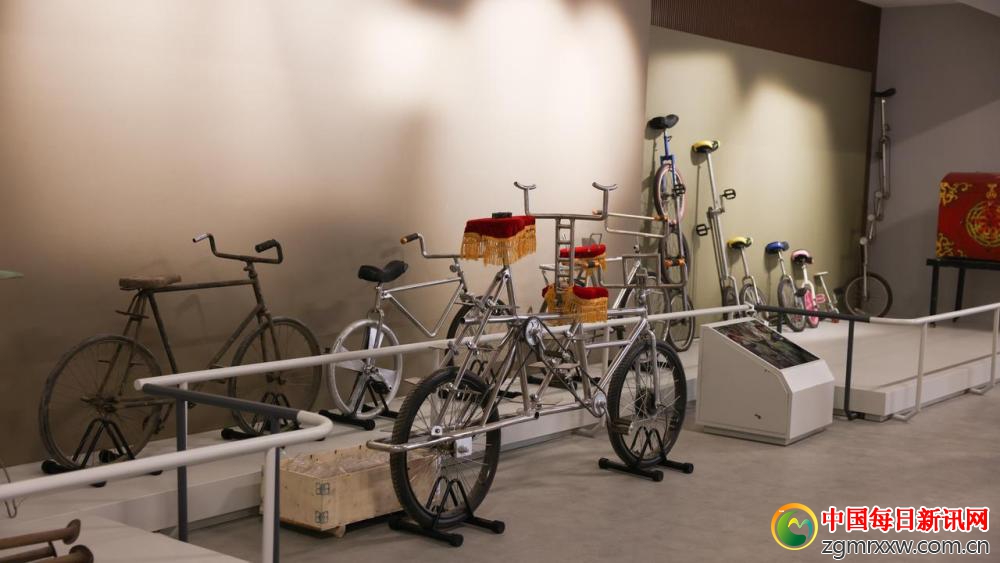吴桥杂技博物馆内一角,摆放着自行车、独轮车等不同年代的杂技道具。受访者供图
