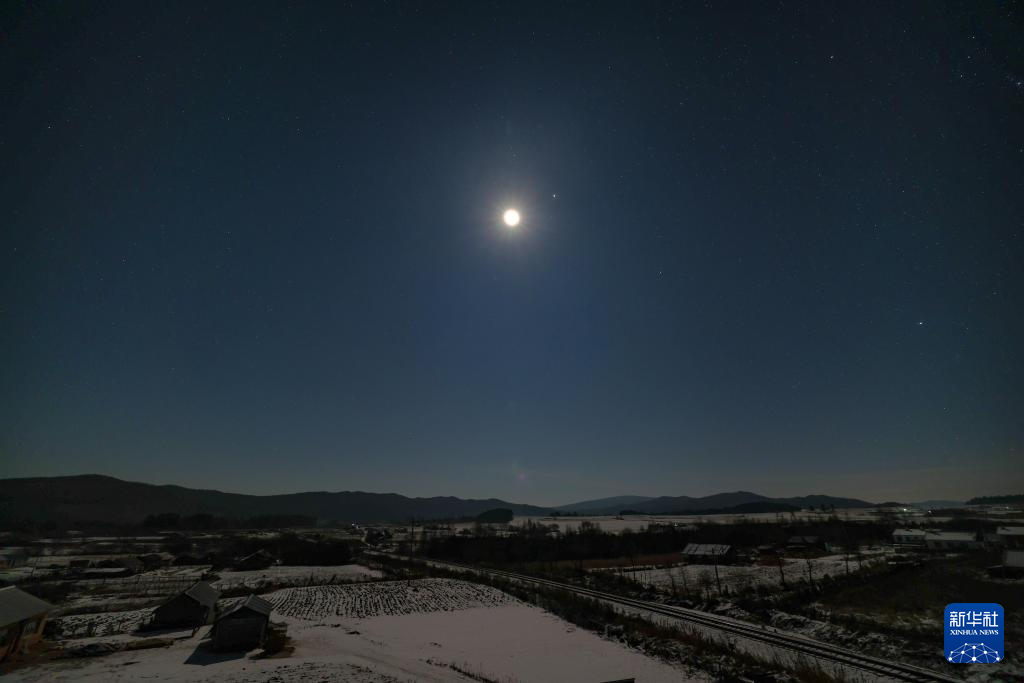 11月11日在黑龙江省伊春市伊美区拍摄的“双星伴月”。