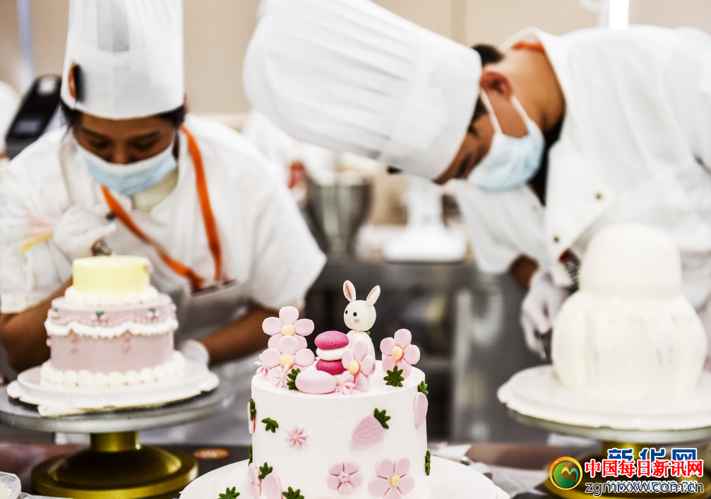 参赛选手们正在制作蛋糕。新华网发 吴志贵 摄