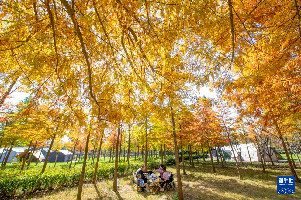 11月6日,游客在云南省曲靖市沾益区西河公园赏景拍照。
