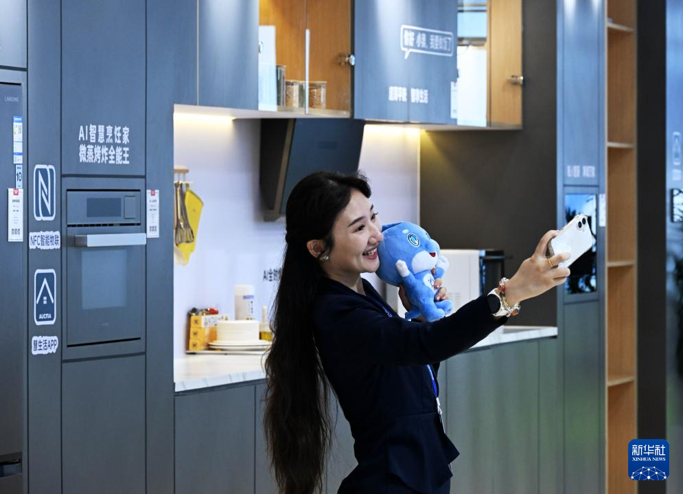 9月19日,参观者在2025中国国际消费电子博览会智慧厨房展区参观时自拍。