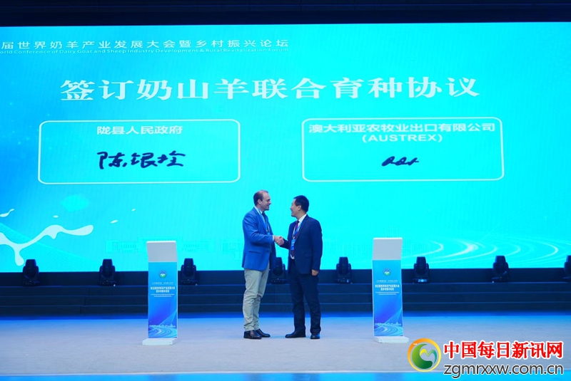 开幕式上,陕西宝鸡陇县人民政府与澳大利亚奶羊育种公司签订了奶山羊联合育种协议,陕西宝鸡千阳县人民政府与陕西正大有限公司与法国奶羊育种公司签订了奶山羊性控冷冻精液研发协议。陕西和氏乳业集团有限公司发布了特医羊奶食品新产品。