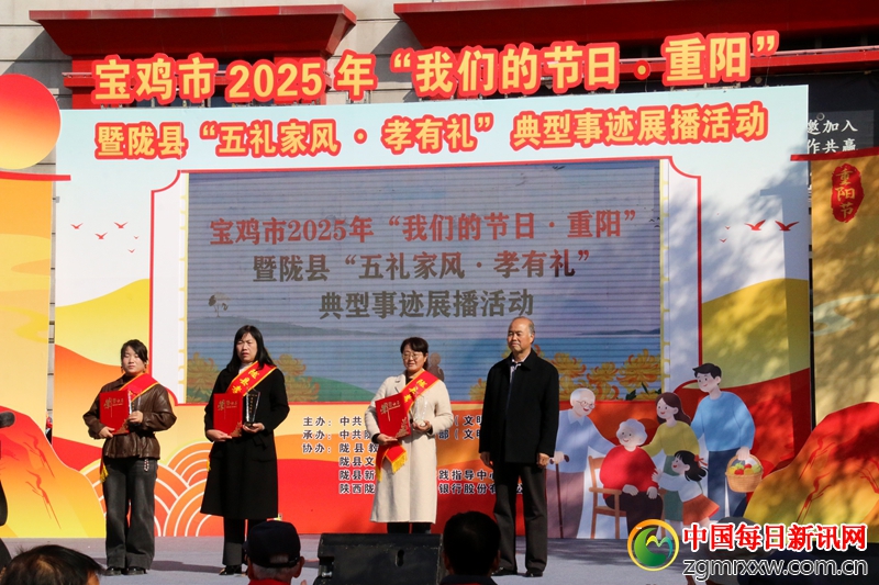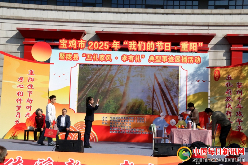 中国每日新讯网(坤邑 王灵燕 通讯员 张建英)陕西西安报道:10月28日,陕西宝鸡市2025年“我们的节日·重阳”暨陕西宝鸡陇县“五礼家风·孝有礼”典型事迹展播活动在陕西宝鸡陇县举行,现场暖意融融。活动由陕西宝鸡市委宣传部(文明办)主办,陕西宝鸡陇县县委宣传部(文明办)承办,以多种形式弘扬孝亲敬老传统美德,传递重阳温情。