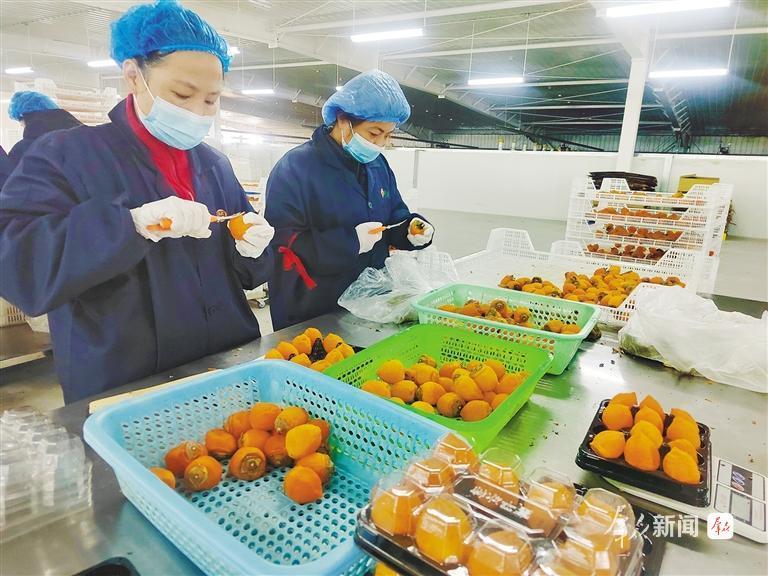10月27日,陕西富平大方天玺绿色农业发展有限公司生产车间里,工人将烘烤后的柿子进行包装。 通讯员 刘丹摄