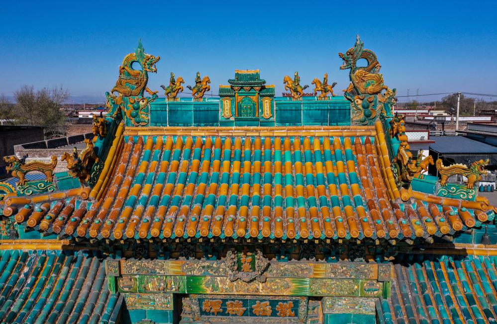 这是11月18日在山西省介休市城隍庙拍摄的琉璃宝顶。