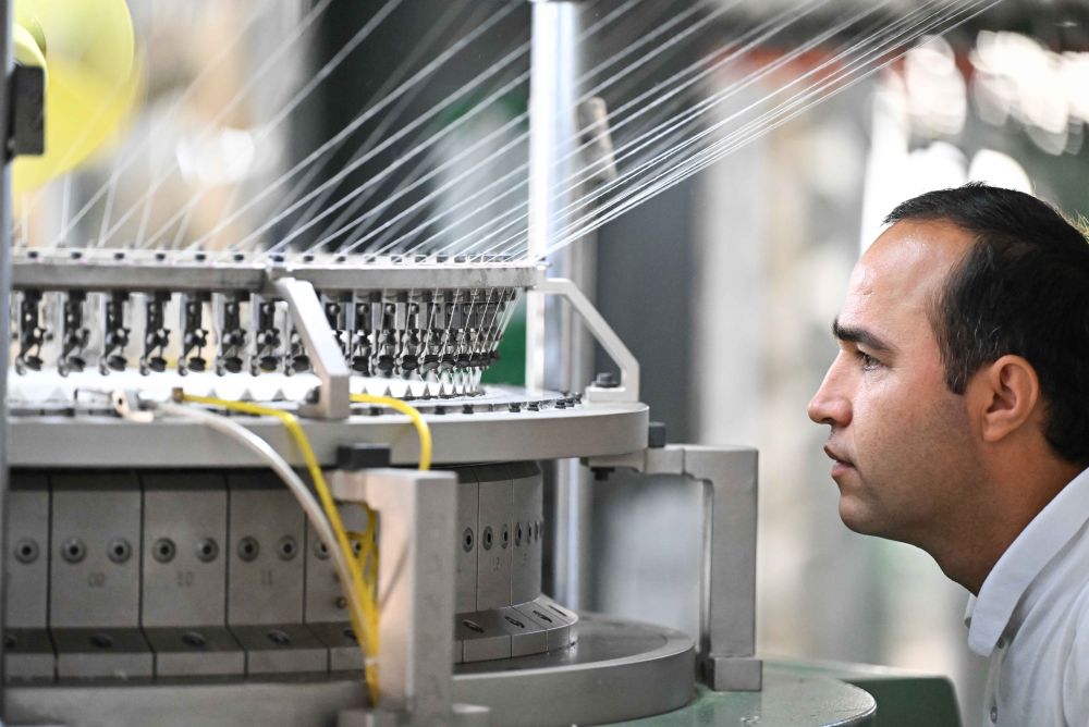 塔方员工古夫龙在中塔合作项目丹加拉农业纺织产业园的针织车间工作。