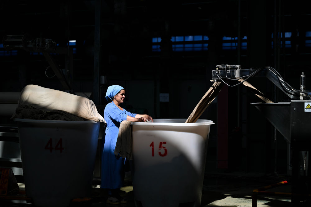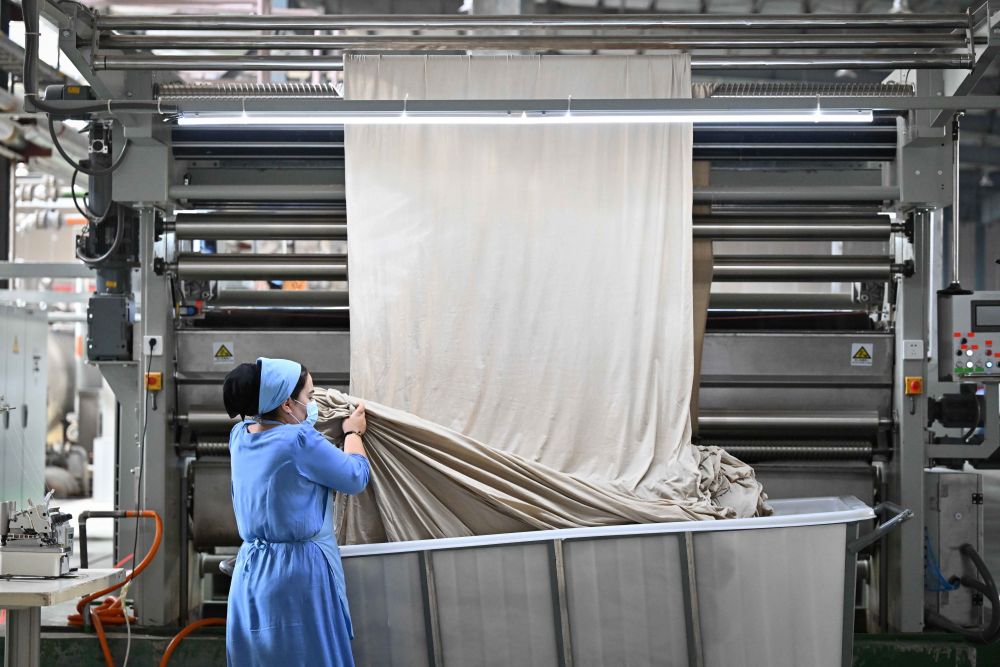 塔方员工在中塔合作项目丹加拉农业纺织产业园的印染车间工作。