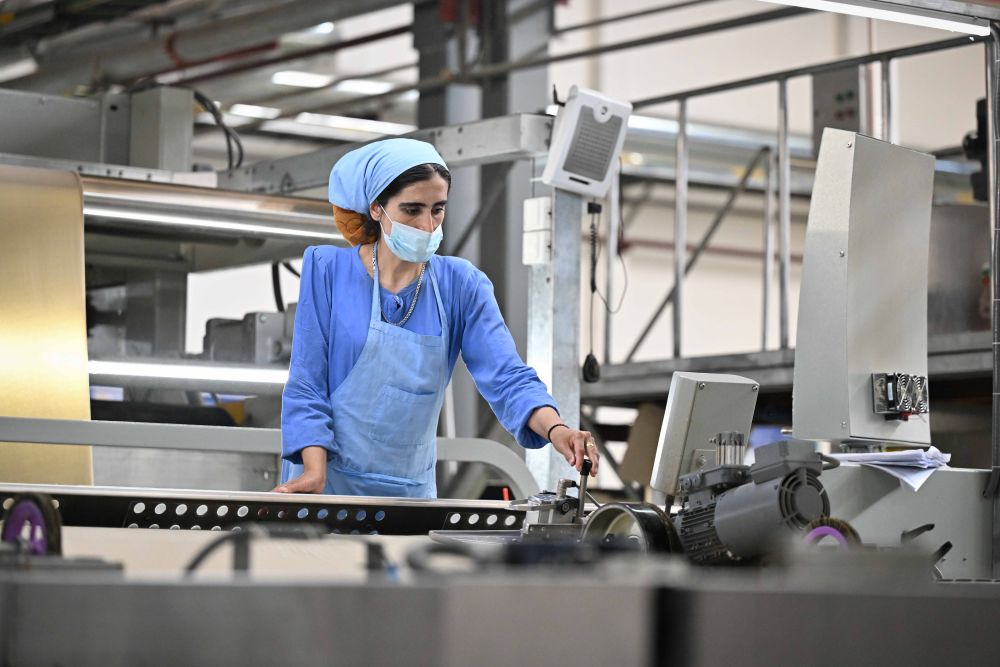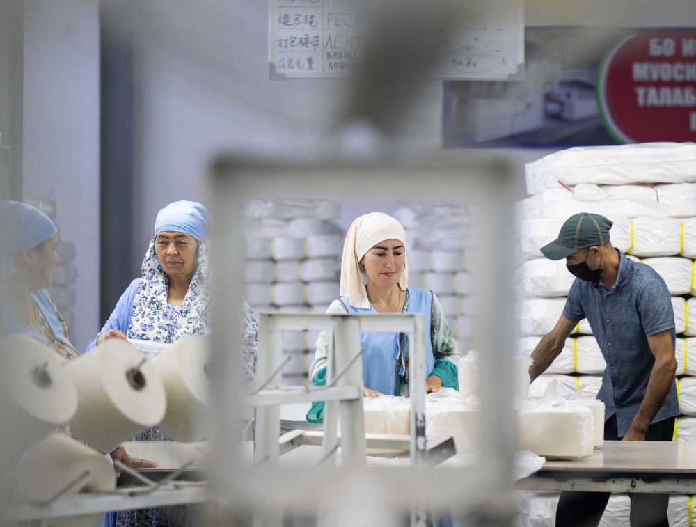 这里的生产车间敞亮整洁,不少纺织器械都是中国制造。工人们专心致志地进行各项工作,其中女员工占据相当比例。当地女性以前大多是家庭妇女,在家照顾孩子或做一些食品去集市出售。
