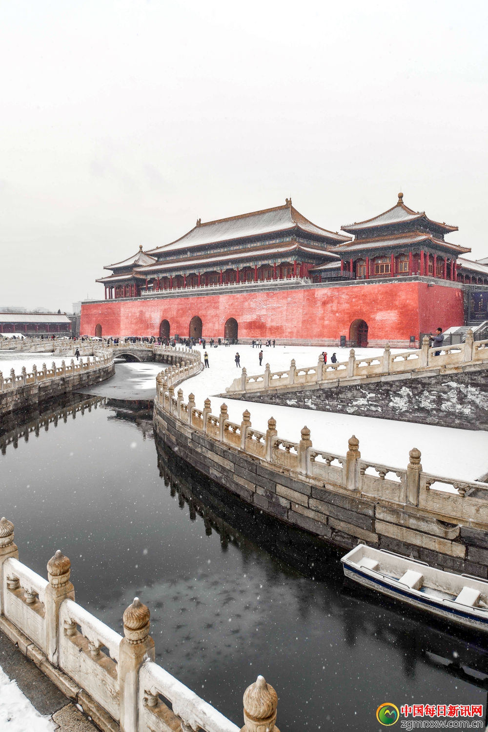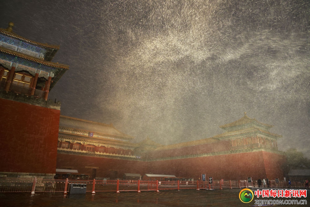 拍摄心得:在太和门广场西面朝东南拍摄,高大的红墙上面是午门城楼,很有气势。尤其是下雪的时候,挂在红墙上的雪花与午门城楼上金黄色琉璃瓦上的积雪,更衬托了紫禁城的恢弘。以内金水河作为前景,蜿蜒向前,引导出画面的视觉中心。