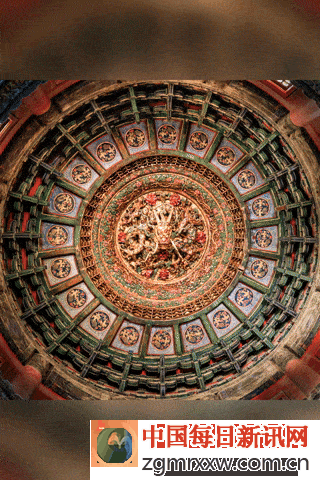 拍摄时,可使用手机或相机广角镜头,尽量保持镜头与天花板平行,框住藻井,形成对称之美,后期将画面裁至正方形,便能得到一幅如工笔画般精致的藻井影像;也可以拉近焦距,特写藻井中央的蟠龙,勾勒出其细腻生动的纹理。