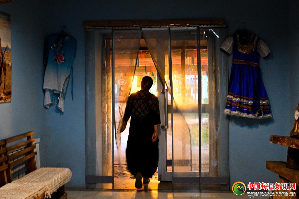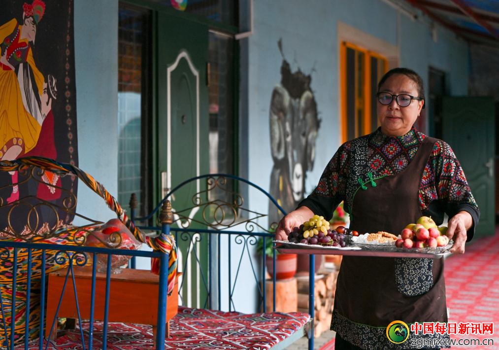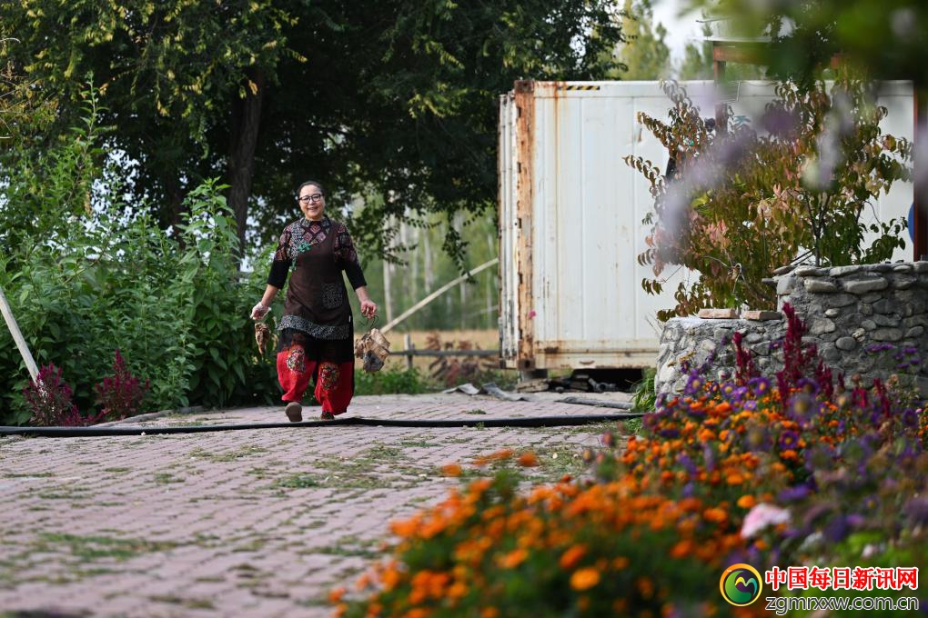 9月17日,哈萨克族客人库尔加娜在院中跳舞。