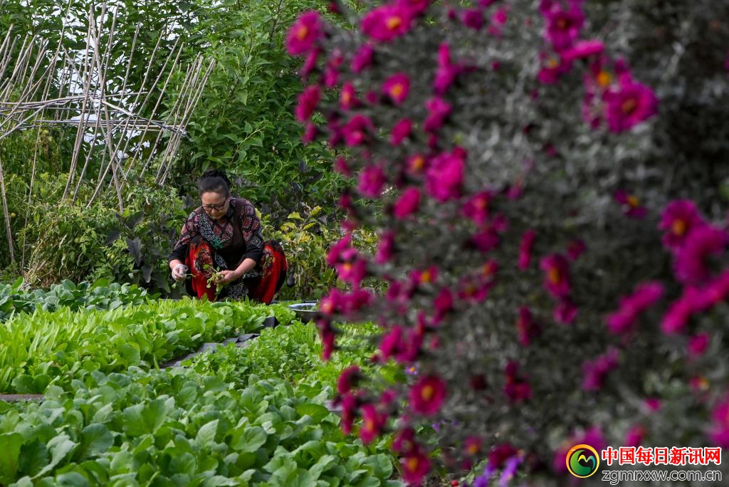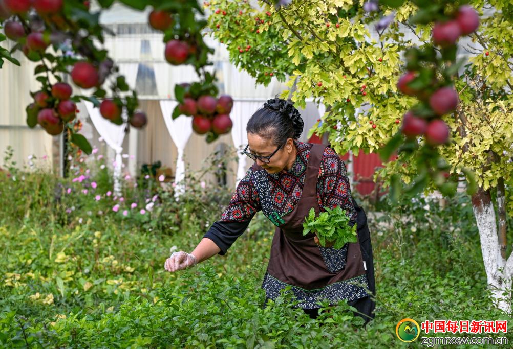 9月17日,马秀花在菜园里采摘薄荷,用于制作薄荷茶。