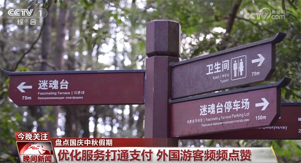 这个假期,外国游客赴华旅游呈现订房更早、住得更长、玩得更深、区域联动等特点,为满足入境游客的多元体验需求,多地持续优化多语种服务和支付服务。在湖南张家界国家森林公园,道路指示牌和导览信息均标注了中、英、韩等多种语言,并配备了60名外语讲解员。