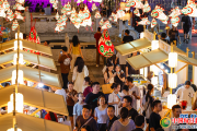 10月2日,游客在安徽省黄山市歙县徽州古城逛市集。  当日,安徽省黄山市歙县徽州古城市集鱼灯璀璨,各类文创产品琳琅满目,吸引众多游客前来逛市集、观夜景,乐享假...