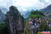 10月3日,游客在黄山风景区游览观光(无人机照片)。  当日,黄山风景区风光旖旎,众多游客前来休闲度假,感受大自然的鬼斧神工,畅享快乐假期,旅游秩序井然。新华...