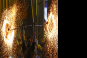 10月4日,表演者在安徽省黄山市休宁县齐云山景区表演抖火壶。  当日,夜幕下的安徽省黄山市休宁县齐云山景区流光溢彩,炭花舞、抖火壶、汪满田鱼灯等民俗项目轮番上...