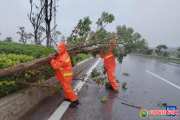 9月19日,公路养护工作人员在清理国道G236线汕尾市捷胜镇路段处的倒伏树木。广东省气象台消息,今年第17号台风米娜已于9月19日14时50分前后在汕尾城区沿海登陆,登陆时中心附近最大风力10...