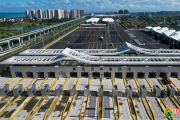 9月17日,离岛货车通过海口新海港和南港二线口岸(货运)集中查验场,开往港区(无人机照片)。9月15日,海口新海港和南港二线口岸(货运)集中查验场正式试运行。根据海南自由贸易港封关...